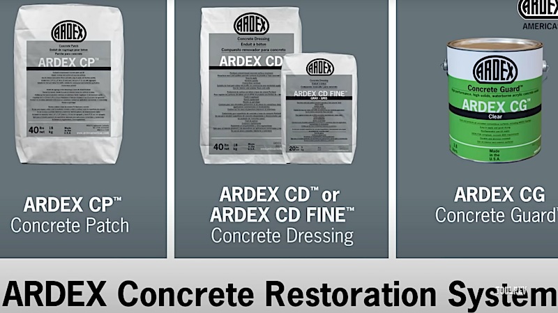 • Concrete resurfacer: Ardex CD, Henry 625 RestorePro, etc.