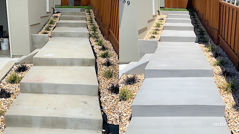 The step landing seen below took 15 minutes to resurface, under clouds in 75 degree whether, and I had maybe 8 minutes to apply a broom finish to the wet sections before they were too dry. So you need to work fast.