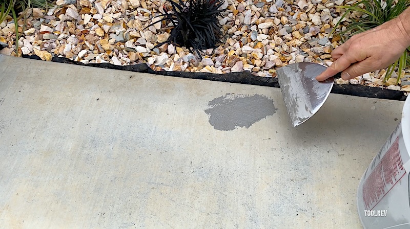 Spread the resurfacer with a trowel or squeegee. I used a metal trowel to “burn” it into the concrete, laying it back slightly thick for an even finish. A rubber squeegee on a pole would’ve saved my back—try it for larger areas.